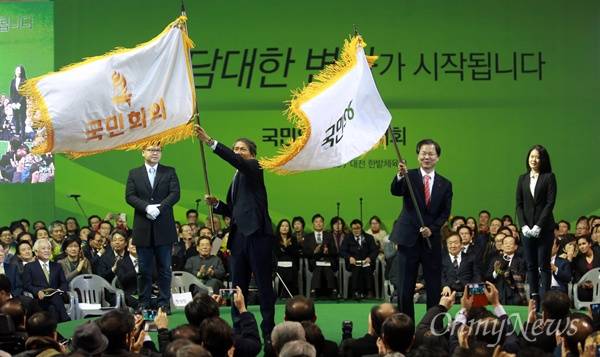 그러면서 "오늘 이 자리는 국민회의와 국민의당이 통합하는 자리"라며 "이제 우리는 작은 차이를 극복하고 우리의 힘을 하나로 모아서 총선승리와 대선승리로, 정권교체로 나아가야한다, 그렇게 해서 풍요롭고 공정한 대한민국을 만드는 위대한 여정을 이제 시작하자"고 말했다.