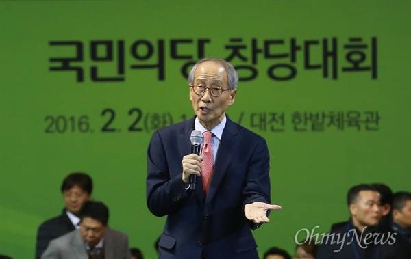 | ▲ 윤여준 "주권자인 우리 손으로 바꾸자" 2일 오후 대전 중구 한밭체육관에서 열린 국민의당 중앙당 창당대회에 윤여준 공동 창당준비위원장이 참석해 국민의당 창당 축하 인사말을 하고 있다. |
