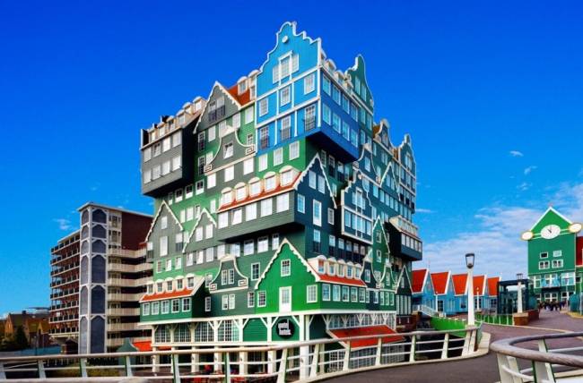 ▶인텔 호텔 자담(네덜란드 암스테르담)=집들을 여러개 다닥다닥 붙여놓은 것처럼 독특한 외관으로 유명하다. 자담 기차역에 부근에 위치하고 있다.