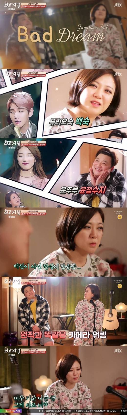 김숙은 백현의 파트를 맡아 '백숙'으로 변신했고, 윤정수는 수지를 패러디한 '윤정수지' 역할을 담당했다. 동일한 카메라 각도 속에서 완성된 전혀 다른 그림이 웃음을 만들어냈다.