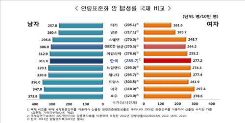 (서울=연합뉴스) 임형섭 기자 = 국내 암 발병률이 경제협력개발기구(OECD) 회원국 평균보다 높고, 이웃나라인 일본의 1.3배에 달한다는 조사 결과가 나왔다.