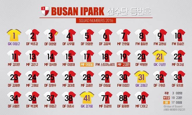 부산은 3일 오후 공식 페이스북을 통해 선수단 등번호를 발표했다.