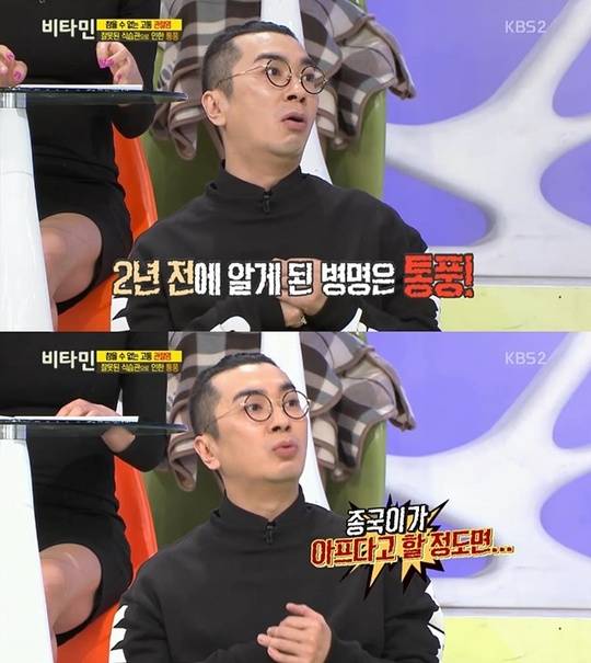MC 이휘재는 "통풍의 고통이 어느 정도라고 했냐"고 물었고, 김정남은 "(김)종국이가 아프다고 할 정도면.."이라고 답했다.