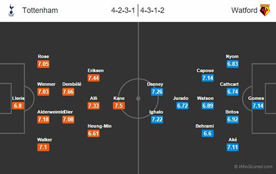 ▲ 토트넘-왓포드 예상 선발 라인업(출처 후스코어드닷컴)