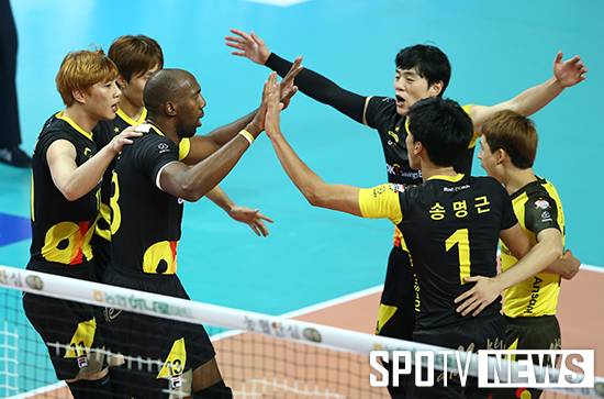 [스포티비뉴스=박성윤 기자] 2015~2016 V리그 시즌이 종반으로 달리고 있는 가운데 1위 경쟁 구도는 'OK저축은행-현대캐피탈' 두 팀으로 좁혀지는 분위기다. OK저축은행은 4일 안산 상록수체육관에서 열린 2015~2016 NH농협 V리그 남자부 5라운드 한국전력과 경기에서 3-0(25-21, 25-23, 25-20)으로 이겨 5연승을 기록했다.