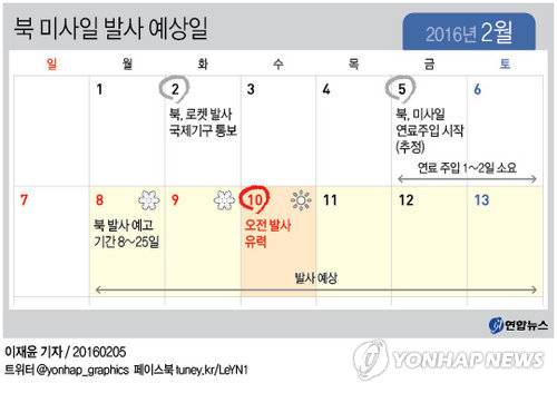 북한이 오전 7시부터 정오 사이에 미사일을 쏘겠다고 통보한 점을 고려하면 10일 오전에 쏠 가능성이 유력하다는 계산이 가능하다.
