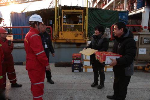 이들은 설 연휴를 맞아 중국 상하이샐비지 소속 잠수사와 선원들을 찾아가 과일·고기 등 격려품과 함께 애끓는 마음을 담은 편지를 전달했다.