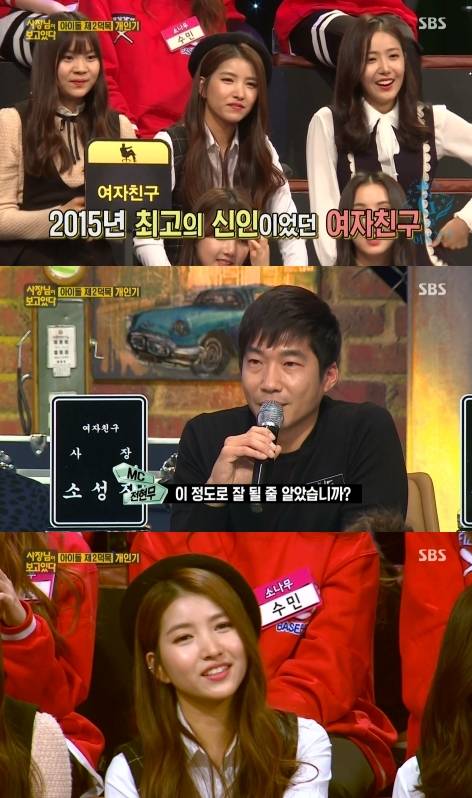 3덕목은 바로 운. 소속사 대표들이 동시에 앉는 의자가 부서지지 않는다면 생존하는 '운 게임'. 소속사 사장님에 이어 멤버들이 바통을 받아 행운대결을 펼쳤다. 물풍선이 터지지 않는 번호를 골라야 한 것. 라붐의 해인이 최종 행운멤버로 선정됐다.