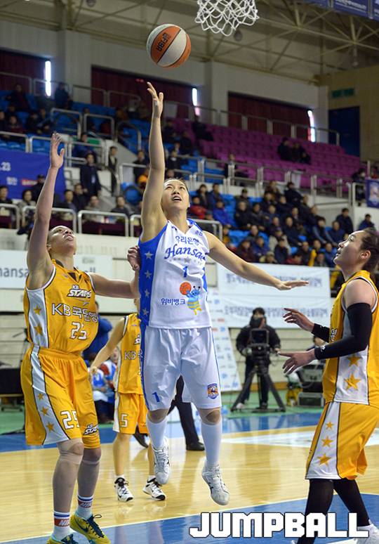 춘천 우리은행은 7일 춘천 호반체육관에서 열린 KDB생명 2015~2016 여자프로농구 청주 KB스타즈와의 경기에서 64-58로 승리했다.
