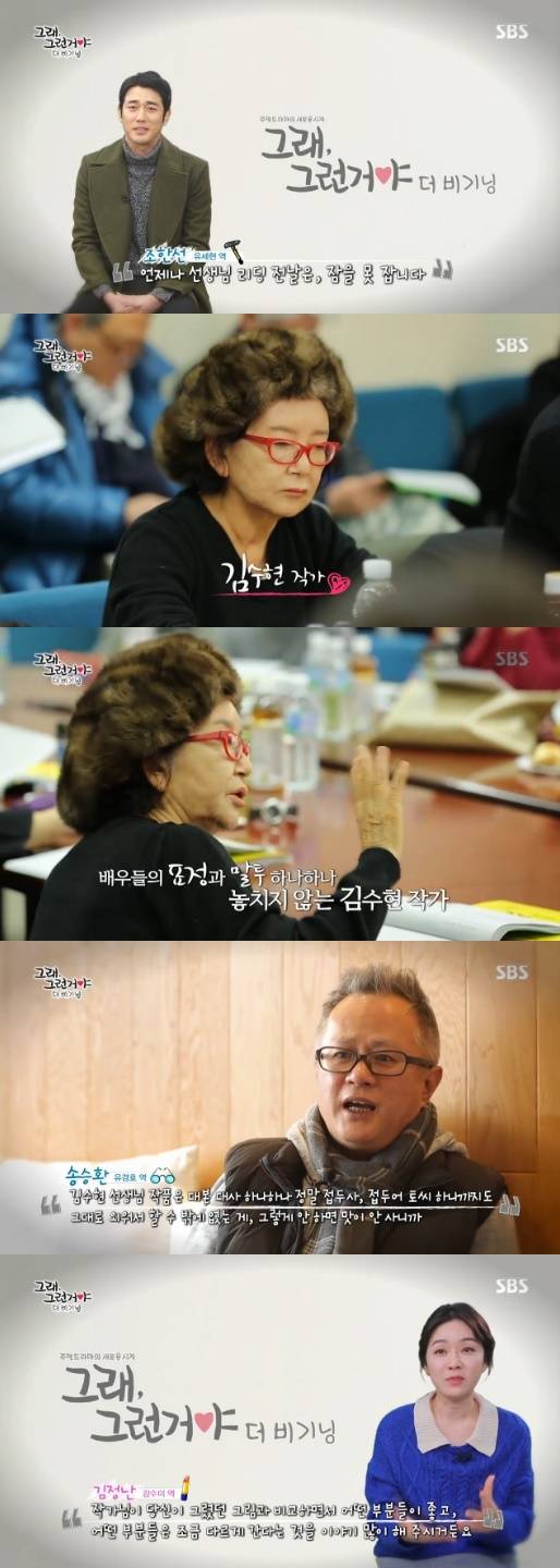 7일 방송된 SBS 새 주말 드라마 '그래, 그런거야-더 비기닝'에서는 김수현 작가와 배우들의 대본 리딩 현장이 공개됐다.
