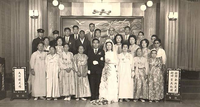 | ▲ 내 결혼식(1973년 4월 13일) 때 양가 가족이 함께 찍은 사진. 내 왼쪽에 어머니께서 서 계시다. |