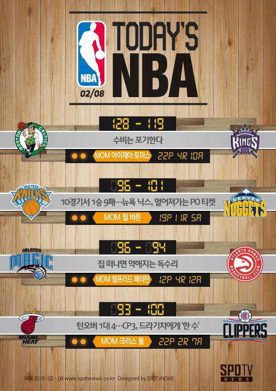 [영상] 8일 Today's NBA ⓒ SPOTV 콘텐츠제작팀