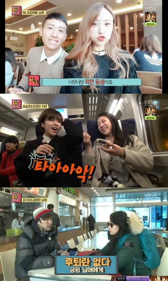 8일 방송된 KBS 2TV 설 특집 '우리는 형제입니다'에서는 EXID 하니의 남매, 배우 공승연·트와이스 정연 자매, 개그맨 유민상 형제, 배우 김지영·김태한 남매가 출연해 일상을 공개했다.