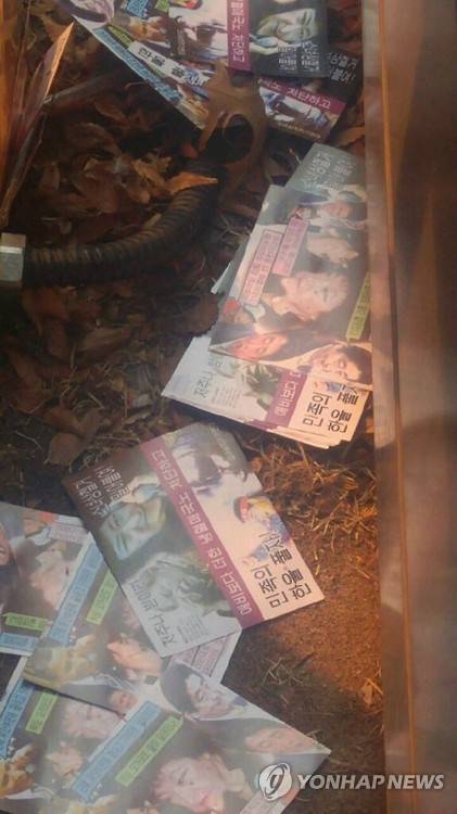 (서울=연합뉴스) 서울 서대문구 일대에서 대남 선전용 전단으로 추정되는 '삐라' 수십장이 발견됐다. 서울 서대문경찰서는 9일 오후 1시께 서대문형무소역사관 안에서 삐라 30∼40여장이 발견됐다는 112신고를 받고 출동, 전단을 수거해 군에 인계했다고 밝혔다. 2016. 2. 9 << 독자 제공 >>