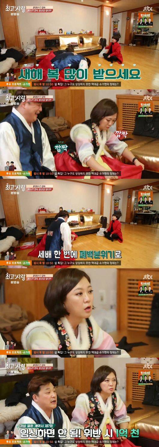 9일 오후 방송된 JTBC 예능프로그램 '님과 함께 시즌2-최고의 사랑(이하 '님과함께2')'에서는 설날을 맞은 김숙과 윤정수 부부가 전파를 탔다.