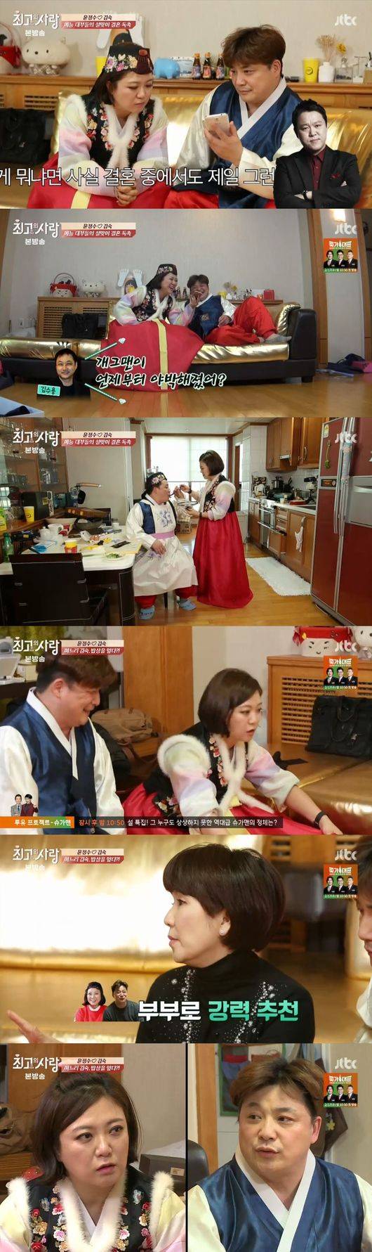 9일 오후 방송된 JTBC 예능프로그램 '님과 함께 시즌2-최고의 사랑(이하 '님과함께2')'에서는 설날을 맞은 김숙, 윤정수 부부의 모습이 전파를 탔다.