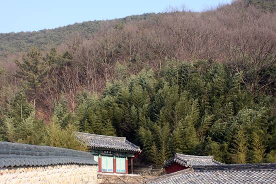 | ▲ 예인상을 기리는 사당 상충사 뒤로 대숲이 자라 있다. |