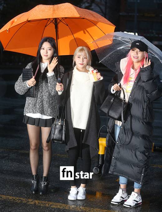 그룹 AOA 크림 찬미, 유나, 혜정이 12일 오전 서울 여의도 KBS 신관 공개홀에서 진행된 KBS 2TV'뮤직뱅크' 리허설에 참석했다.
