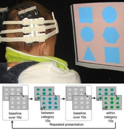연구팀은 생후 5~7개월 된 유아 12명을 대상으로, 색칠된 사각형과 동그라미가 그려진 슬라이드를 보여주는 실험을 진행했다. 이때 기능적 자기공명영상장치(fMRI)를 사용해 뇌 혈액에서 산소를 운반하는 헤모글로빈의 농도 변화를 측정, 뇌 신경세포의 활동 정도를 분석했다.