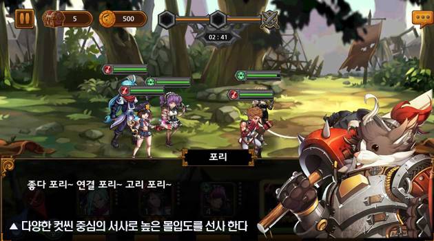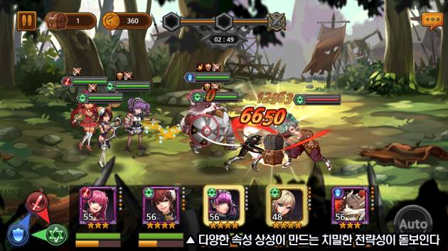 2D 횡스크롤 자동전투 방식으로 매우 빠르게 진행되며, 세분화된 속성과 상성관계는 보다 치밀한 전략플레이의 재미를 선사한다.