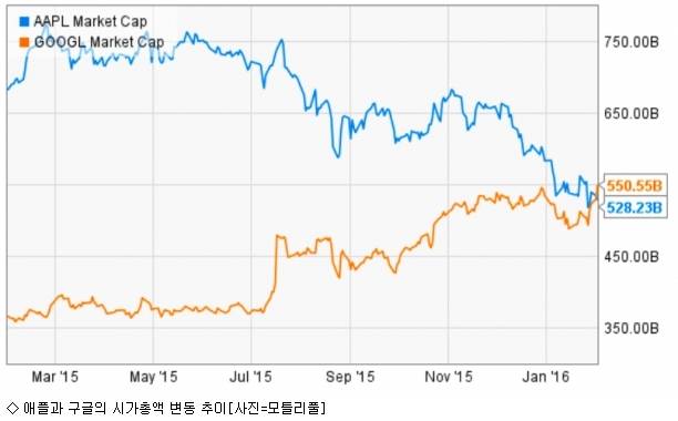 시가총액 1위 놓고 애플·구글 '엎치락뒤치락'