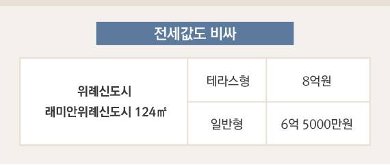 테라스형은 매물을 찾기도 쉽지 않다. 래미안 위례신도시(410가구)는 29가구가 테라스형이지만 매물은 한 건도 없다. 팔려는 사람이 없다는 의미다. 전셋값도 비싸다. 테라스형인 124㎡형 전세는 8억원선이지만 일반 평면인 120㎡는 6억5000만원에 전셋집을 구할 수 있다.