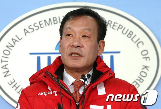 (서울=뉴스1) 박지혜 기자 = 4·13총선 대구 북구을 새누리당 예비후보인 김두우 전 청와대 홍보수석이 14일 서울 여의도 국회 정론관에서 기자회견을 하고 있다.