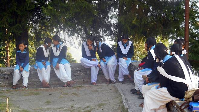 학교에서 나와 숙소로 향하는데 멀리 힌두사원에서 경전 읊조리는 소리가 느린 노래 가락으로 흘러나왔다. 바라나시나 델리의 힌두사원에서 들었던 소리와 달리 발아래로 내려다보이는 운해처럼 요란하지 않고 차분했다. 나직함 속에서도 변화무쌍했다. 때로는 생로병사를 노래하는 것처럼 구슬프게 다가왔고 때로는 우뚝 솟아 있는 히말라야 설산에 경배하는 소리처럼 힘이 실려 있었다. 나직하게 읊조리고 있었지만 신을 향한 그 어떤 간절함이 배어 있었다.