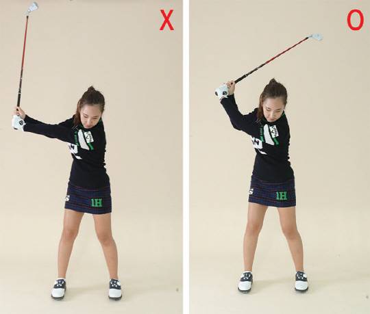 버틸 힘을 가진 골퍼가 팔을 펴는 것은 스윙을 더 잘 버텨주고 방향과 힘 전달을 잘 되게 해 줍니다. 하지만 그렇지 않은 골퍼에게 억지로 왼팔을 펴도록 만든다면 오히려 역효과가 납니다. 힘이 과도하게 들어가 자세가 뻣뻣해지게 됩니다. 이처럼 뻣뻣하게 힘이 들어간 자세로는 부드러운 스윙을 할 수 없습니다.