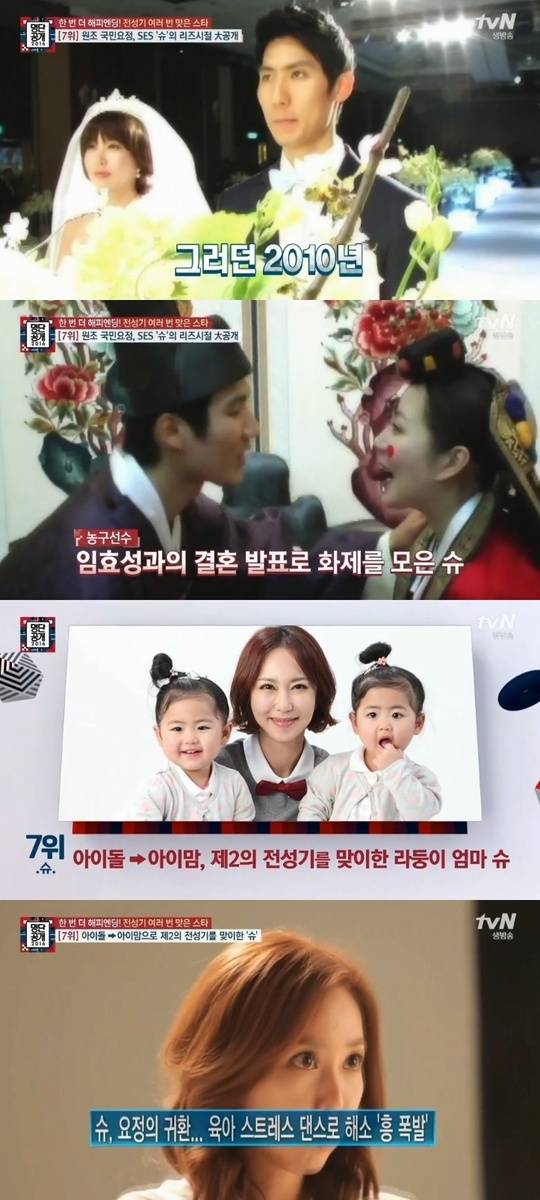 S.E.S 출신 슈는 2월15일 방송된 tvN '명단공개 2016'에서 전성기를 여러 번 맞은 스타 7위로 소개돼 눈길을 모았다.