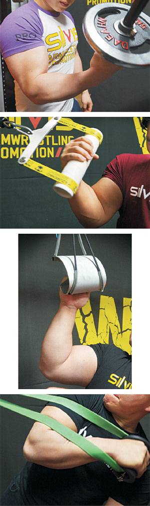 이태경 씨는 “팔씨름은 30초 안팎에서 승부가 가려진다”며 “그래서 70∼80㎏의 바벨을 들고 20∼30초간 버티는 ‘맞춤형’ 훈련을 한다”고 설명했다. 홍지승 씨는 “팔씨름 훈련과 일반 근력 운동의 차이점은 팔을 움직이는 가동범위에 있다”며 “팔씨름을 할 땐 팔을 수직에서 수평으로 90도 정도 움직이기 때문에 이 각도 내에서의 근력을 집중적으로 키운다”고 말했다. 경희대 교육대학원 석사 과정을 밟고 있는 홍지승 씨는 2년 전 한 TV 프로그램에 출연, 5시간 30분 동안 1000 대 1의 팔씨름 대결을 펼쳤었다. 170㎝, 75㎏으로 크지 않은 체구지만 얕보다간 큰코다친다.