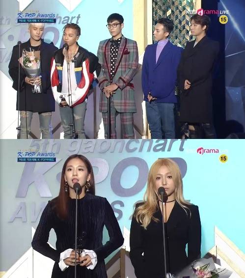 빅뱅·미쓰에이, 올해의 가수상 수상..빅뱅 2관왕[가온차트 어워드]