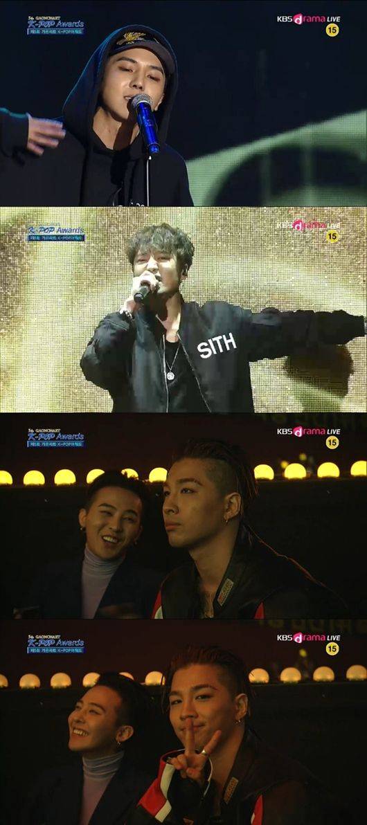 송민호, 강승윤과 '겁' 특별무대..빅뱅 '흐뭇'[가온차트 K팝어워드]