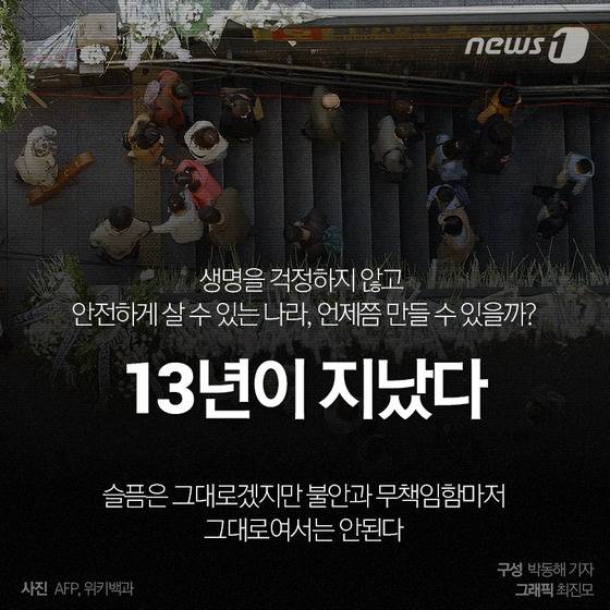 (서울=뉴스1) 박동해 기자,최진모 디자이너 = 벌써 13년 전일이다. 192명의 사망자와 151명의 부상자가 발생했던 '대구 지하철 참사'. 막을 수 있었던 인재(人災)였지만, '안전불감'과 '책임회피'로 피해를 키웠다. 또 사후 '부실 조사'로 유가족들의 가슴에 또 한 번 못을 박았다. 대구 지하철 참사 그후 13년, 우리는 과연 달라졌을까?