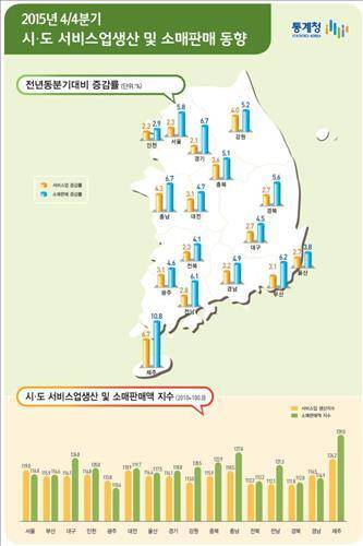 아울러 통계청이 2011년 시·도별 서비스업 생산 증가율 자료를 작성한 이래 최고치를 기록했다.