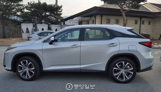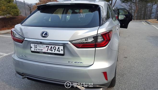 글·사진=김기환 기자 khkim@joongang.co.kr두둥! RX 450h가 모습을 드러냈습니다. 오늘 제가 타고 달릴 차이기도 하지요. 4륜 구동(AWD) 중형 하이브리드 SUV입니다. 3.5L 6기통 직분사 엔진에 무단 변속기(CVT)를 얹었습니다. 최고 출력 263마력, 최대 토크 34.2㎏f·m의 성능을 냅니다.전면을 들여다봤습니다. 렉서스임을 한 눈에 알아볼 수 있게 해 주는 모래시계 모양 ‘스핀들’ 라디에이터 그릴이 눈에 띕니다. 바깥쪽 위로 쭉 뻗은 헤드라이트 눈매가 날렵합니다. 가운데 ‘L’ 엠블럼 주위에 적용한 파란색이 하이브리드차란 사실을 알려주네요.측면입니다. 곡선 대신 날카로운 직선을 곳곳에 적용했습니다. 렉서스 측의 소개대로 모터쇼에서나 볼 수 있는 ‘컨셉트카’ 느낌을 줄 정도로 과감합니다.뒷면입니다. 램프에 새겨진 렉서스의 ‘L’자 문양이 선명합니다. 열쇠를 들고 뒷면 엠블럼 근처에 손을 대면 트렁크가 열리는 ‘터치리스 파워 백도어’ 기능을 렉서스 최초로 적용했습니다.사이드 미러입니다. 왜 찍었냐고요? 사이드 미러를 최대한 문짝 옆으로 띄워 시야를 넓혔습니다. 전면 보닛과 천장을 잇는 ‘A 필러’ 밑 부분도 막지 않고 투명하게 비웠습니다.안 쪽에서 보시면 개방감을 느낄 수 있을 겁니다. 실제 운전해보니 확실히 시원했습니다.그런 면에서 독특한 ‘C 필러’(천장과 차체 뒷면을 잇는 부분)도 보여드립니다. 어떻습니까. 마침 C 필러가 없는 것처럼 보이지 않나요?안을 들여다 봤습니다. 렉서스다운 ‘보수적인’ 디자인이 눈에 띕니다. 오디오ㆍ공조장치를 조정할 수 있는 가운데 부분은 과거 소니 시절 전축을 보는 듯한 느낌입니다.12.3인치 대형 디스플레이를 적용했습니다. 물론 터치는 못합니다. 버튼? 없습니다.출발 직전! 기어봉입니다. 터치해도 반응하지 않았던 디스플레이는 기어봉 아래 ‘마우스’ 처럼 달린 고감도 조작휠을 움직여 조정합니다. 국내 소비자에게 호불호가 갈리는 부분입니다. 피아노 브랜드 야마하와 협업해 개발한 원목 장식도 눈에 띕니다.