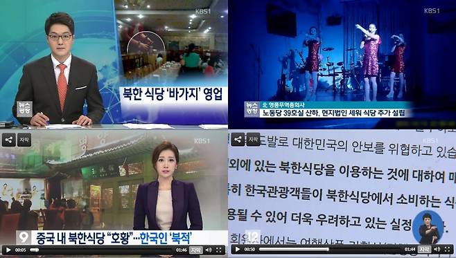 | ▲ KBS는 최근 개성공단 폐쇄 이후 중국과 동남아 일대의 북한 식당들이 한국인에게 바가지를 씌우며 ‘외화벌이에 혈안’이 돼 있는데도 한국 손님들로 북적인다고 연달아 보도했다. |