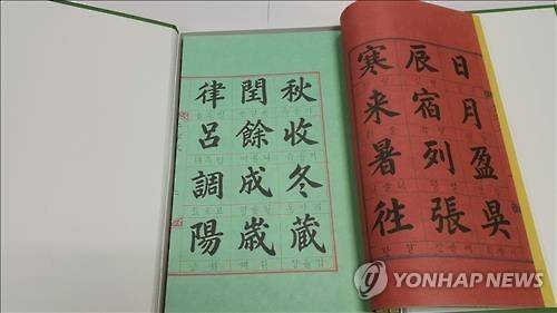 (서울=연합뉴스) 왕길환 기자 = 이배용 한국학중앙연구원장이 국내에서 유일하게 소장하고 있는 '조선 왕실 교육용 천자문(千字文)'의 영인본(影印本)을 종이나라박물관에 기증했다.