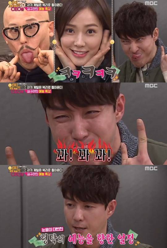 이날 심형탁은 김구라의 코치를 받으며 '외모 몰아주기'를 연습했다. "좀 더 얼굴을 꽈비틀라"는 김구라의 지시에 엽기적인 표정을 짓던 심형탁은 결국 눈물까지 흘려 스튜디오를 웃음 바다로 만들었다.