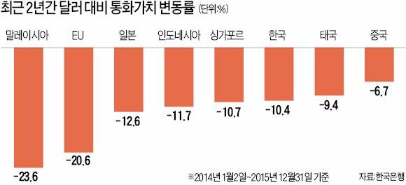 기재부와 한국은행은 지난 19일에도 원화가치가 급락했을 때 적극적인 구두개입에 나섰다. 한국 기업의 수출에 악영향을 미치더라도 원화 약세가 급격하게 나타나면 시장 개입을 한다는 점을 분명히 한 것으로 풀이된다.