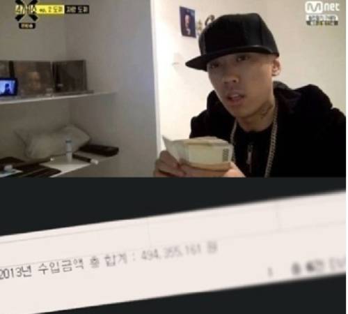 도끼가 공개한 사진에는 2013년 도끼의 수입으로 추정되는 4억 9435만 원이라는 금액의 숫자가 공개됐다.