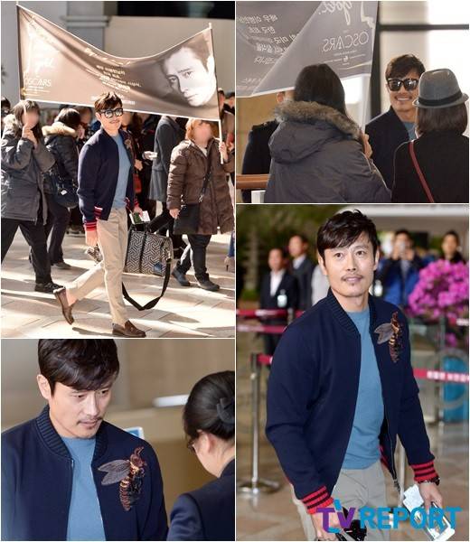 이날 이병헌은 한국인 최초로 아카데미 시상식 참석 소식을 알려 수많은 플래시 세례를 받았다. 특히 많은 팬들이 현수막을 준비하며 이병헌의 아카데미 시상식 참석을 축하해 여행객들의 시선까지 한 몸에 받는 모습이었다.