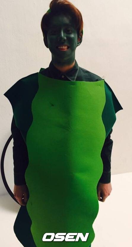 23일 OSEN이 단독 입수한 사진에서 박경은 제작한 초록색 의상을 입고 해맑게 웃고 있다. 얼굴도 초록색으로 칠해 보는 이들을 절로 미소 짓게 만든다. 인간 오이로 완벽하게 변신해 웃음을 자아낸다.