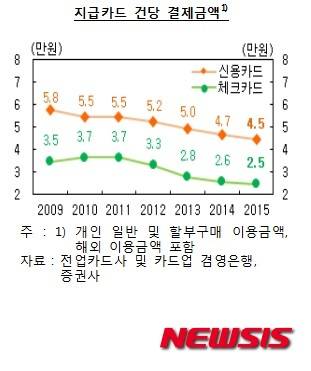 체크카드 발급, 3년째 신용카드 추월..1인당 2.3장 만들어