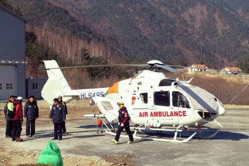 | 정선알파인경기장엔 이 ‘닥터헬리’라고 불리는 이 의무헬기가 월드컵 활강 및 슈퍼대회전 경기가 열리는 내내 대기중이었다. |
