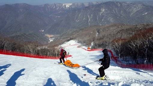 활강과 슈퍼대회전은 스피드종목이다. 그래서 부상위험도 높다. 노르웨이 연구팀이 조사한 월드컵 출전 10개국 선수의 부상률(1000회 출전 당)에 따르면 회전은 4.9, 대회전은 9.2. 반면 슈퍼대회전과 활강은 11과 17.2로 훨씬 높다. 그러니 이 대회에서 부상선수를 돌볼 의사들이 긴장할 수밖에. 게다가 이런 스키장 의무지원은 모두가 처음이었다. 한 팀을 이뤄 구급활동을 벌일 패트롤과 응급구조사(소방대원)들도 마찬가지고.