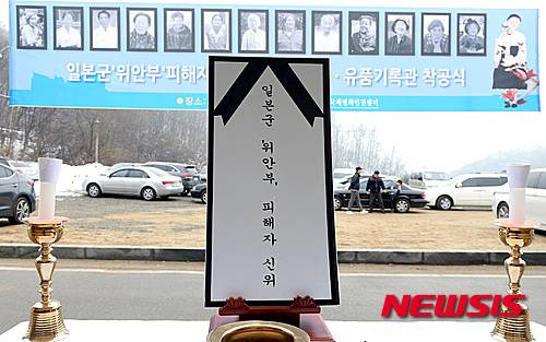 【광주(경기도)=뉴시스】박영태 기자 = 27일 오전 경기 광주시 나눔의 집에서 열린 ‘일본군 위안부 피해자 추모제 및 추모관 유품기록관 착공식’에 위안부 피해 할머님들의 사진이 걸려 있다. 2016.02.27.