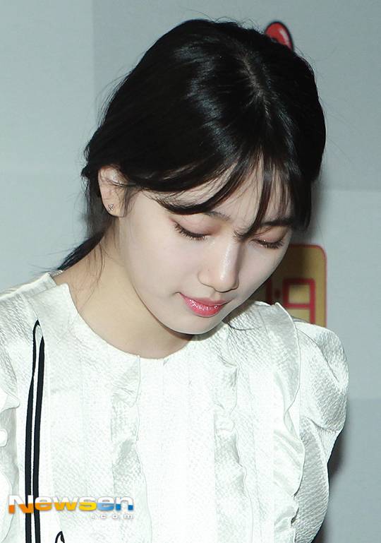 이날 수지는 눈부신 흰 블라우스에 레더 소재의 스커트, 글래디에이터 슈즈를 매치했다.