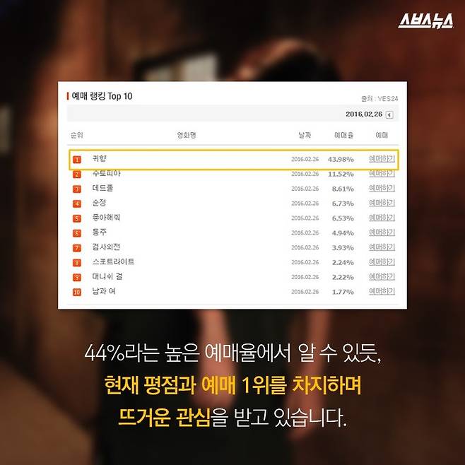 44%라는 높은 예매율에서 알 수 있듯, 현재 평점과 예매 1위를 차지하며 뜨거운 관심을 받고 있습니다.