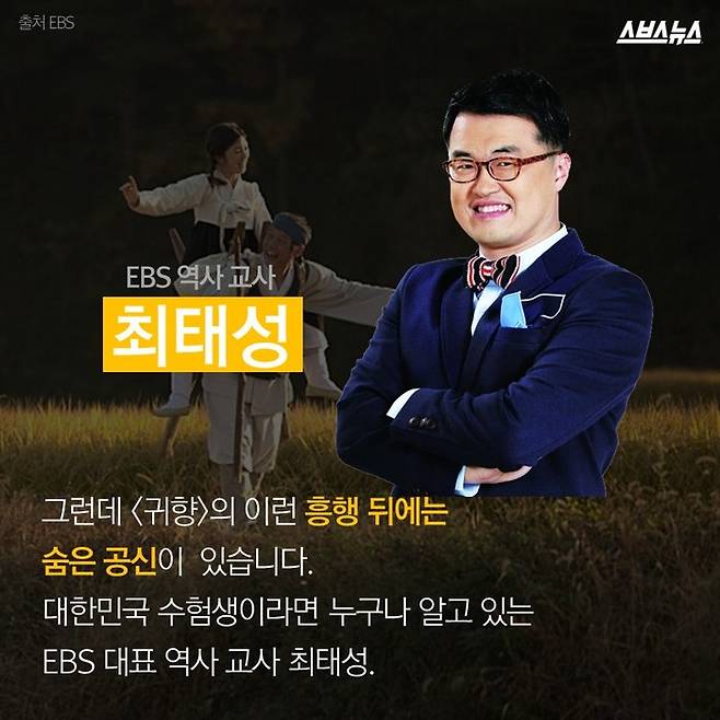 그런데 <귀향>의 이런 흥행 뒤에는 숨은 공신이 있습니다. 대한민국 수험생이라면 누구나 알고 있는 EBS 대표 역사 교사 최태성.